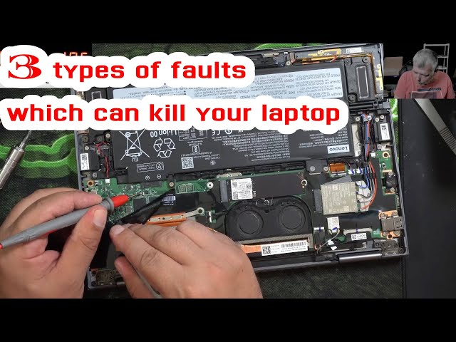 Watch a detailed electronics repair tutorial demonstrating the diagnosis and repair of a Lenovo ThinkPad X1 Yoga Gen 7 laptop experiencing multiple critical issues including complete power failure, charging problems, and additional hardware faults. Learn systematic troubleshooting techniques as the instructor identifies and addresses three distinct problems preventing the laptop from functioning, providing step-by-step analysis of power delivery circuits, charging systems, and component-level diagnostics. Gain practical insights into professional laptop repair methodologies, circuit board analysis, and the tools and techniques used to restore functionality to a seemingly dead device through methodical fault isolation and component replacement procedures.