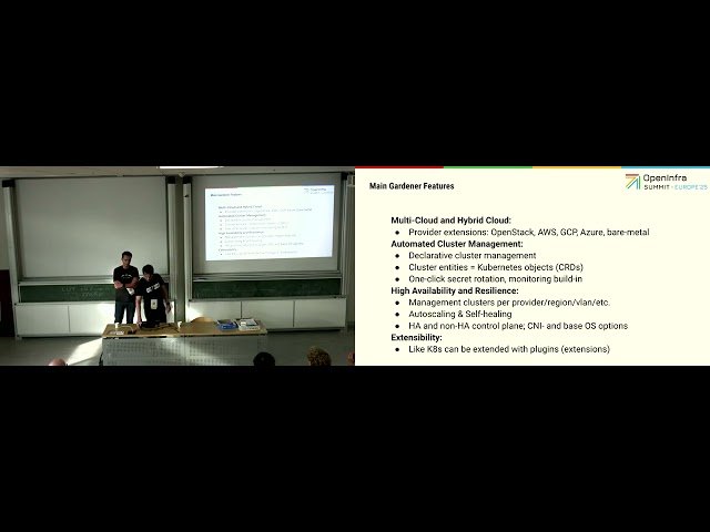 Learn about replacing Magnum with Gardener as a Kubernetes-as-a-Service solution on OpenStack through this 31-minute conference talk by Dmitry Galkin and Maksim Shepelev from the OpenInfra Foundation. Explore Gardener's Kubeception architecture and key features while understanding the fundamental differences between Gardener and Magnum. Discover the practical challenges and benefits encountered when integrating Gardener with OpenStack infrastructure. Gain insights from real-world production experience running Gardener on OpenStack over a full year of deployment. Watch a practical demonstration showcasing the implementation and see how this radical approach to Kubernetes cluster management compares to traditional Magnum enhancements using the Kubernetes Cluster API.