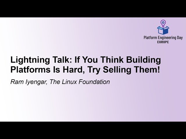 This lightning talk by Ram Iyengar from The Linux Foundation explores the challenging but crucial non-technical aspects of platform engineering, particularly focusing on sales strategies. Learn why building platforms is only half the battle - selling them effectively is equally important. Discover how common platform promises like "better developer experience," "faster releases," "cost savings," and "reduced time to market" translate to actual purchase decisions. Gain insights into sales techniques that can be applied to both internal and external platform projects, helping engineering teams better justify platform efforts and communicate their impact. Particularly valuable for engineers who struggle with concepts beyond the programming realm, this 11-minute talk provides practical approaches to create shared understanding about platform value within organizations.