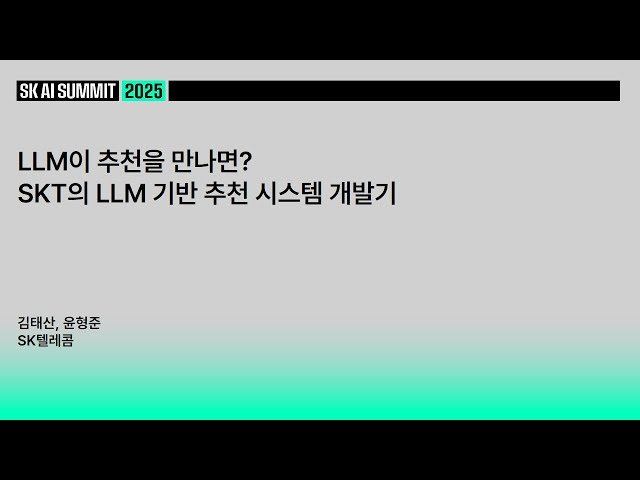 LLM이 추천을 만나면? SKT의 LLM 기반 추천 시스템 개발기 | SK텔레콤 김태산, 윤형준