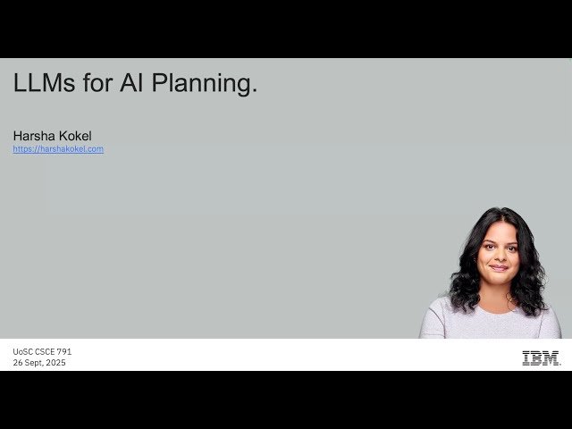 Explore the intersection of Large Language Models and AI Planning in this comprehensive lecture delivered by Dr. Harsha Kokel at the AI Institute at University of South Carolina. Discover how modern LLMs can be leveraged to enhance traditional AI planning approaches, examining both the opportunities and challenges that arise when combining these powerful technologies. Learn about current research developments, practical applications, and the potential future directions for integrating language models into automated planning systems. Gain insights into how natural language processing capabilities can improve plan generation, plan explanation, and human-AI collaboration in planning tasks. Understand the theoretical foundations and practical implications of using LLMs as tools for solving complex planning problems across various domains.