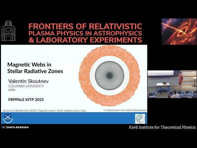 Explore the complex magnetic field structures that form in stellar radiative zones through this 18-minute conference talk. Delve into the formation and evolution of magnetic webs within the radiative interiors of stars, examining how these intricate magnetic configurations develop and influence stellar dynamics. Learn about the theoretical frameworks and computational models used to understand these phenomena, including the role of magnetic field topology and its implications for stellar evolution. Discover how magnetic webs interact with radiative processes and contribute to the overall magnetic field architecture in stellar interiors. Gain insights into the latest research findings on magnetic field organization in radiative zones and their potential observational signatures. Understand the connection between these magnetic structures and broader astrophysical phenomena, including their relevance to stellar magnetic activity and the generation of stellar magnetic fields.