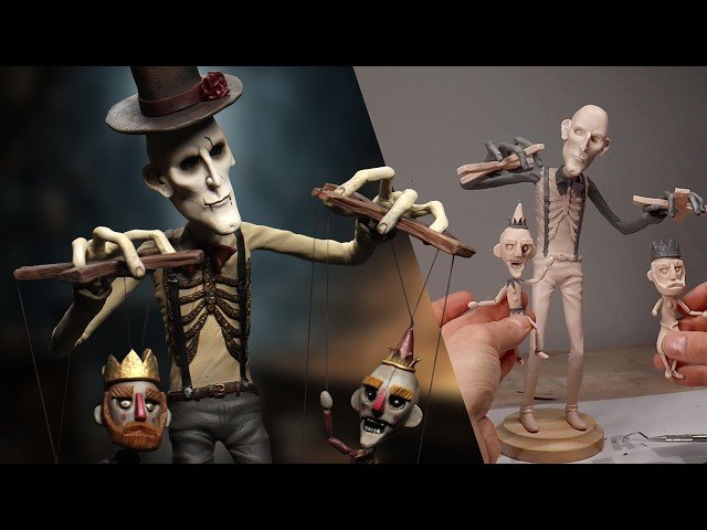 Watch a comprehensive polymer clay sculpting tutorial where you'll learn to create an original nightmare character called "The Puppet Master" from start to finish. Follow along as the instructor builds a complete armature, applies clay layers, and adds intricate details to bring this creepy character to life. Discover the full backstory and lore behind The Puppet Master while observing professional sculpting techniques including clay conditioning, detail work with various tools, and finishing methods using airbrush and hand-painting techniques. Master the use of different clay types including Cosclay Medium Firm, Super Sculpey, and Premo Sculpey, while learning proper armature construction with aluminum wire. Gain insights into professional finishing techniques including varnishing and painting methods that give the sculpture its final haunting appearance. The tutorial includes detailed explanations of tool usage, clay preparation, and step-by-step construction methods suitable for intermediate to advanced polymer clay artists interested in character creation and horror-themed sculptures.