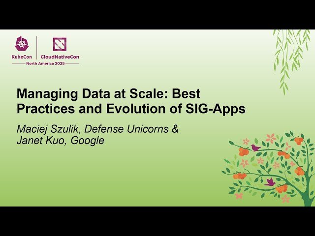Explore the latest developments in Kubernetes workload management through this 26-minute conference talk from CNCF that examines the evolution and best practices of SIG-Apps. Learn about Kubernetes' expanded support for high-volume data workloads through Jobs and discover how Workload APIs including StatefulSet, ReplicaSet, and PDBs have matured to become more consistent and feature-rich. Gain insights into the specific changes implemented by SIG Apps over the past year and understand the potential directions for future improvements in managing data at scale. Discover features that require community input to reach completion and understand how to contribute to SIG Apps' ongoing development. Participate in the open discussion and Q&A session to learn about becoming part of the SIG Apps evolution and contributing to the advancement of cloud native workload management.