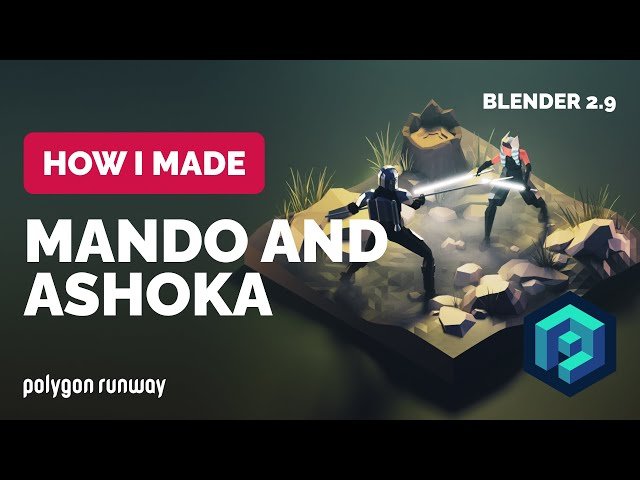 Watch a 52-minute video tutorial demonstrating the 3D modeling process for creating low-poly Mandalorian and Ahsoka characters in Blender 2.9. Learn techniques for recreating a cinematic scene using stylized, low-poly character models. Follow along as the instructor walks through their workflow and shares tricks for creating 3D illustrations. Download provided character base meshes and scene files to practice. Gain insights into rendering and creating engaging 3D visuals inspired by popular sci-fi franchises.