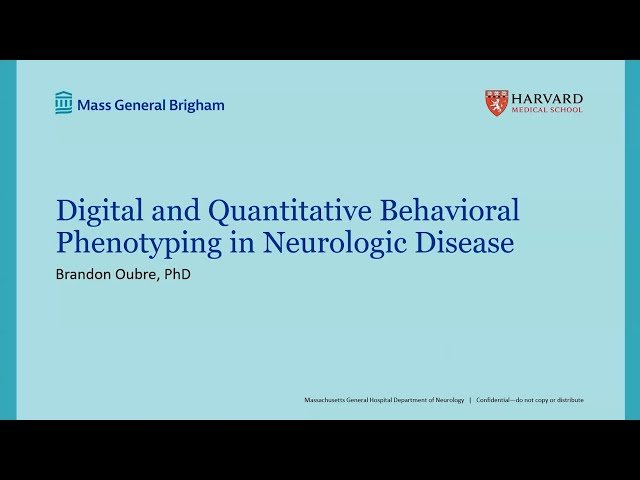 Explore digital and quantitative approaches to behavioral phenotyping in neurologic diseases through this 39-minute conference presentation by Brandon Oubre from Harvard Medical School and Massachusetts General Hospital. Learn about the limitations of current semiquantitative clinical scales used to assess motor signs in neurologic diseases, including their coarse granularity, susceptibility to floor and ceiling effects, scaling difficulties, and disconnect from natural behavior patterns. Discover two innovative research approaches addressing these challenges: the Neurobooth project, which collects multimodal time-series data across motor domains using eye tracking, audio, wearable inertial sensors, and video capture technologies to enable deep modeling of constrained behaviors and cross-domain motor coordination analysis; and efforts to capture and analyze natural, unconstrained behavior in free-living environments using wearable devices to develop ecologically valid measures of disease severity and progression. Gain insights into how these digital health technologies can support the development of more sensitive disease progression measures, early disease sign identification, and ecologically valid assessments of natural behavior, representing a significant advancement over traditional patient-reported outcome measures that are often subjective and bias-prone.