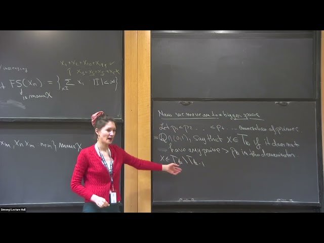 Explore a mathematical seminar presentation examining Hindman's Theorem and its implications for monochromatic sums and products in number theory. Delve into the fundamental theorem stating that finite coloring of natural numbers always yields an infinite sequence with same-colored finite sums, and discover how this extends to products when considering powers of 2. Learn why attempting to achieve both monochromatic sums and products simultaneously fails in natural numbers, as demonstrated by findings from the 1970s. Investigate the extension of this mathematical concept beyond natural numbers into broader numerical spaces, including dyadic rationals, rational numbers, and real numbers. Gain insights from collaborative research conducted by Maria-Romina Ivan from the University of Cambridge, working alongside Neil Hindman and Imre Leader, presented at the Computer Science/Discrete Mathematics Seminar II at the Institute for Advanced Study.