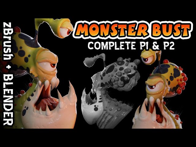 Monster Bust: 2D Ref to 3D Sculpt (Part 1 & 2 - zBrush + Blender)