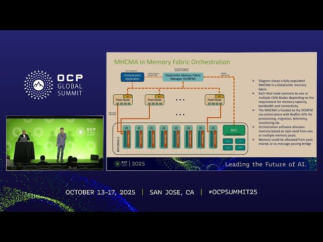 Learn about the next-generation Multi Headed Composable Memory Appliance (MHCMA) architecture in this 20-minute conference talk from the Open Compute Project. Discover the evolution from the initial FPGA-based Composable Memory Appliance (CMA) that supported up to 2 x16 PCIe-Gen5 CXL1.1 Host ports per blade and 8 blades per 19" shelf CXL Fabric Managed Composable Pooled Memory Appliance to the proposed second-generation design. Explore the advanced architecture utilizing next-generation 12nm ASIC devices capable of supporting up to 8 x8 PCIe-Gen5 CXL2.0 Host Ports per blade with up to 8 blades per 2U OCP Pooled and/or Shared CXL Fabric Managed MHCMA Chassis architecture. Gain insights into the current Plan of Record (POR) and understand opportunities for collaboration under the Contributor License Agreement (CLA) as presented by Mohamad El-Batal, Technologist at Seagate, and Hongjian Fan, Electrical Engineer at Seagate.