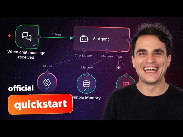 Learn to build your first AI agent using n8n's workflow automation platform in this comprehensive 21-minute tutorial. Master essential n8n concepts including triggers and actions, the data items paradigm, conditional logic, and data transformation while constructing a Question & Answer AI agent with a knowledge base. Build an ingest workflow to process new Q&A pairs and store them in n8n's Data Table, then create an AI agent capable of querying this information to provide grounded responses. Discover how to configure LLM-based tasks, set up AI agents with tools, establish chat interfaces, and publish your workflows for production use. Practice testing your AI agent through the Chat Hub interface and learn to monitor workflow executions for debugging and optimization. Access downloadable workflow templates to follow along with the hands-on examples and accelerate your learning process.