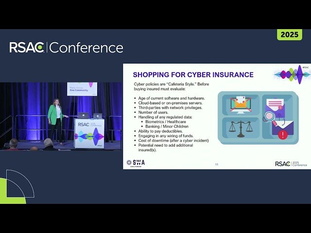 This 51-minute conference talk from RSA Conference features Sarah Anderson, Founder & Attorney at SWA Law LLC d/b/a and LegallyCyber.com, who explores the unique nature of cyber risk insurance compared to traditional insurance policies. Learn how to maximize benefits from cyber insurance policies where benefits aren't standardized and insurer's "preferred vendors" may not meet expectations. Understand the competing motivations between insurers and their vendors, and gain practical knowledge on how to effectively navigate the cyber insurance landscape both before and after security incidents occur. Designed to empower policyholders with strategies to get the most value from their cyber risk coverage and successfully manage the claims process.