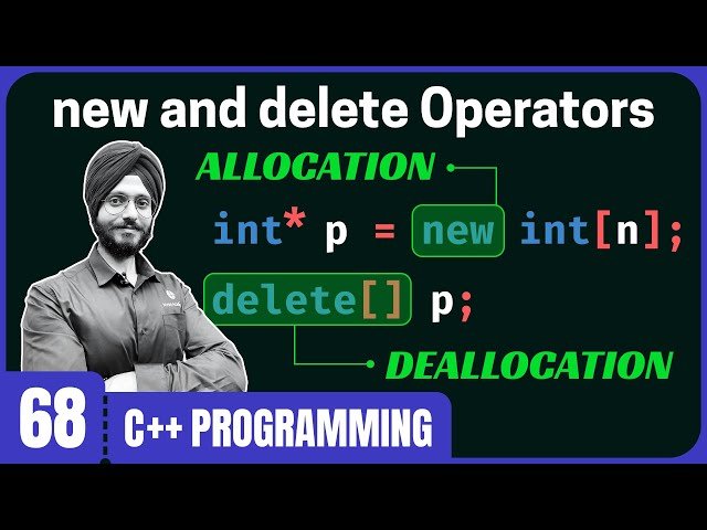 Learn about dynamic memory allocation in C++ through this 23-minute programming tutorial that covers the essential new and delete operators. Explore the fundamental concepts of dynamic memory management, starting with an introduction to how new and delete operators work in C++. Discover how to apply these operators specifically for array allocation and deallocation, understanding the syntax and best practices for managing memory dynamically. Follow along with practical C++ program examples that demonstrate real-world implementation of new and delete operators, showing how to properly allocate memory during runtime and prevent memory leaks by deallocating it when no longer needed. Master the critical programming concepts that form the foundation of efficient memory management in C++ applications.