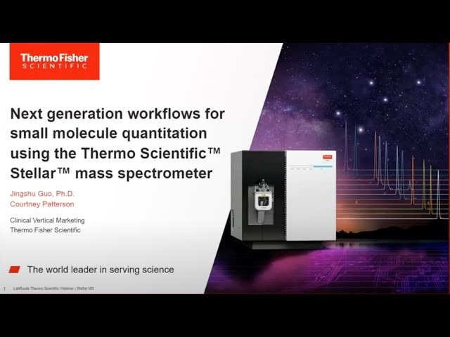Learn advanced techniques for small molecule quantitation in a 54-minute webinar presented by mass spectrometry experts Courtney Patterson, MS, and Dr. Jingshu Guo. Explore the capabilities of the Thermo Scientific Stellar mass spectrometer for developing targeted quantitative workflows in clinical research. Master method development considerations for toxicology research, fast chromatography implementation, and automated intelligent instrument control. Discover how to enhance selectivity and specificity while achieving improved detection and quantitation limits using the instrument's quadrupole mass filter, dual-purpose ion concentrating routing multipole, and dual-pressure linear ion trap. Gain practical knowledge on leveraging higher energy dissociation (HCD) and resonant collisional dissociation (CID) using tMS2 and tMS3 acquisition for improved quantitative analysis in complex biological matrices. Focus on increasing productivity through streamlined method creation, creating targeted MS2 and MS3 methods in one analytical method, and understanding the benefits of Adaptive RT for scheduled PRM acquisition for small molecules.