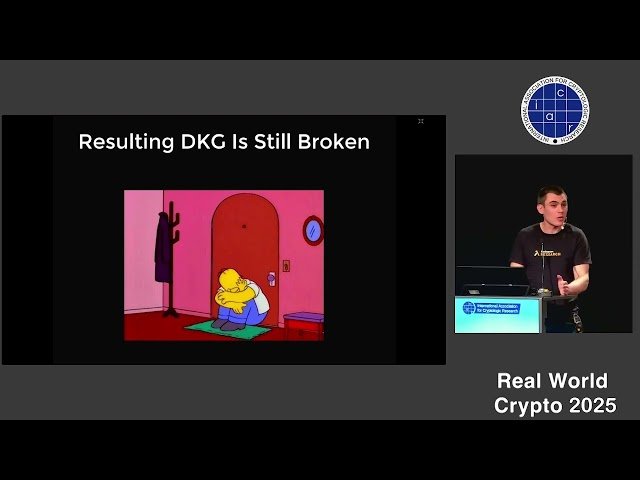 This talk from Real World Crypto (RWC) 2025 explores "No More Guesswork: Ready-to-Use Distributed Key Generation" presented by Jonas Nick as part of the Distributed Trust session chaired by Lenka Marekova. Dive into practical implementations of Distributed Key Generation (DKG) systems that eliminate uncertainty in cryptographic applications. As the fourth presentation in the Distributed Trust track, the talk provides valuable insights for cryptographers and security professionals looking to implement robust key generation protocols in distributed environments. For more comprehensive information including abstracts and contributing authors, visit the official RWC 2025 program page.