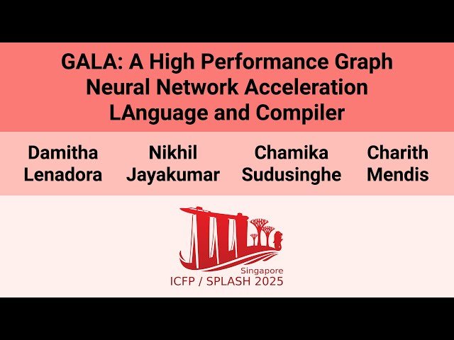 Explore a 15-minute conference presentation introducing a domain-specific language and compiler designed to accelerate Graph Neural Network workloads through novel optimization strategies. Learn how researchers from the University of Illinois at Urbana-Champaign and University of Texas at Austin developed a system that addresses limitations in existing GNN frameworks by composing optimizations at both intra-operator and inter-operator levels. Discover the innovative approach that introduces two novel intermediate representations to track and compose transformations while maintaining a global view of GNN programs, including their training processes. Examine how this system enables training-specific transformations and achieves significant performance improvements, with geometric mean speedups of 2.55× for inference and 2.52× for training across multiple systems, graphs, and GNN models. Understand the domain-specific language that exposes intra-operator transformations as scheduling commands and the compiler's novel inter-operator transformations that exploit previously missed optimization opportunities in Graph Neural Network acceleration.