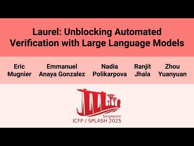 Learn how large language models can automatically generate assertions to assist program verifiers in this 15-minute conference presentation from OOPSLA 2025. Discover the challenges faced by automated program verifiers like Dafny when SMT solvers require manual hints in the form of assertions, creating additional work for proof engineers. Explore the innovative tool that leverages LLMs to automatically generate these required assertions, reducing the burden on developers. Examine two key domain-specific prompting techniques: analyzing verifier error messages to determine optimal assertion placement locations, and selecting relevant example assertions from the same codebase using a novel proof similarity metric. Review the evaluation results on a new benchmark dataset containing complex lemmas from three real-world Dafny codebases, demonstrating the tool's ability to generate over 56.6% of required assertions with minimal attempts. Understand how this approach makes LLMs a cost-effective solution for unblocking program verifiers without requiring human intervention, advancing the field of automated program verification through machine learning integration.