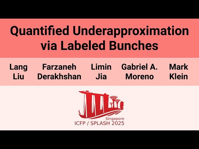 Explore a 14-minute conference presentation from OOPSLA 2025 that introduces a novel formal reasoning system for composing heterogeneous program analyses. Learn about the challenges of soundly combining different analysis techniques in large software systems, where some components undergo full formal verification while others rely on testing or other under-approximated analysis methods. Discover how traditional compositional reasoning techniques like rely-guarantee reasoning work effectively for verified components but fail to handle components analyzed through testing or other under-approximated approaches.