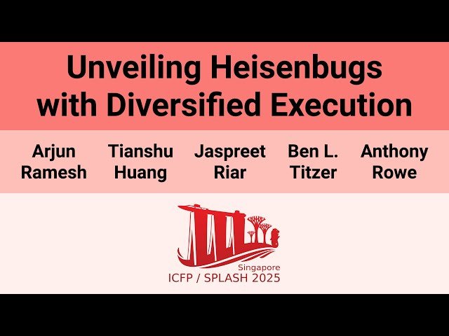 Watch this 14-minute conference presentation from OOPSLA 2025 that introduces a groundbreaking methodology for detecting and identifying heisenbugs—elusive software bugs that change behavior when observed—using diversified execution strategies. Learn about the challenges these notorious bugs pose in cyber-physical edge systems, where they evade static detection tools and exploit complex dynamics with unpredictable physical environment interactions. Discover how researchers from Carnegie Mellon University developed Beanstalk, an experimental WebAssembly-backed dynamic data-race detection framework that leverages execution diversity across instrumentation density and hardware platforms to achieve superior bug detection compared to homogeneous strategies. Explore the critical insight that execution diversity benefits outweigh efficiency reductions from limited instrumentation or weaker devices, making the approach scalable for low-overhead deployments across numerous compute nodes. Understand the introduction of the "heisen factor," a novel statistical metric for categorizing heisenbugs and measuring detector effectiveness, along with practical insights for debugging strategies in both development and deployment environments. Gain knowledge about how this methodology addresses the fundamental challenge of determining a bug's "difficulty" or "heisen-ness" while maintaining performance requirements for real-world adoption.
