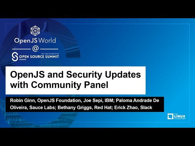 Join a panel discussion featuring experts from the OpenJS Foundation and industry leaders as they delve into crucial OpenJS and security updates. Gain valuable insights from Robin Ginn of the OpenJS Foundation, Joe Sepi from IBM, Paloma Andrade De Oliveira representing Sauce Labs, Bethany Griggs from Red Hat, and Erick Zhao of Slack. This 36-minute talk covers the latest developments in OpenJS and addresses important security considerations, providing a comprehensive overview of the current landscape in open-source JavaScript technologies.