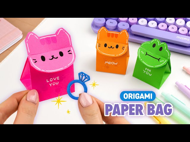 Оригами Пакет c Котиком и Лягушкой из бумаги | Оригами сумочка из бумаги | Origami Paper Bag