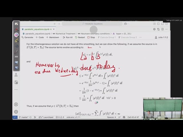 In this 1 hour 36 minute lecture from the ICTP-SAIFR Minicourse on Partial Differential Equations: Analytical and Numerical Tools, Professor Oscar Reula from the National University of Córdoba, Argentina continues his exploration of parabolic equations. Delve into advanced analytical concepts and numerical approaches for solving parabolic partial differential equations in this 27th class of the series. The lecture is part of a comprehensive minicourse running from May 5 to June 30, 2025, designed to equip participants with essential mathematical tools for analyzing and numerically solving PDEs.