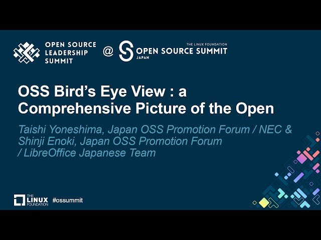 OSS Bird’s Eye View : a Comprehensive Picture of the Open -Speakers: Shinji Enoki, Taishi Yoneshima