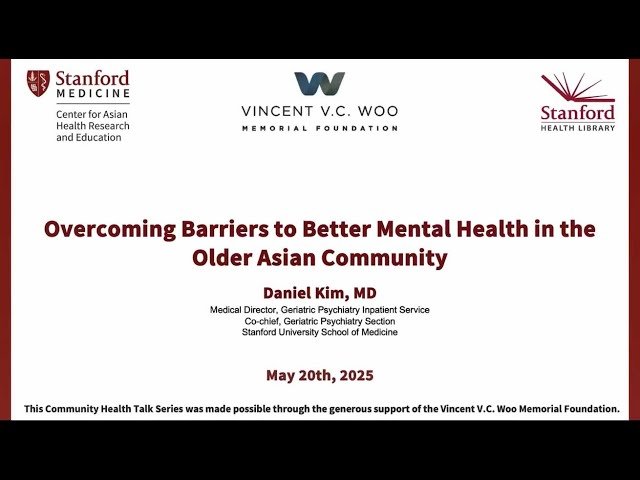 This one-hour talk from Stanford University explores the unique mental health challenges faced by older adults in the Asian community, where mental health issues are often under-recognized and undertreated. Learn about the significant barriers to care including stigma, cultural beliefs, and limited access to treatment that affect this population. Discover culturally sensitive interventions that can effectively support both individuals and the broader community. The presenter, Dr. Daniel Kim, is a board-certified geriatric psychiatrist who serves as co-chief of the Geriatric Psychiatry Section at Stanford University and medical director of the inpatient Geriatric Psychiatry Service. Dr. Kim brings extensive experience from his clinical fellowship in geriatric psychiatry and his previous role at UC San Diego, where he directed senior behavioral health programs. The talk also highlights Stanford Health Library's free resources, including research assistance from medical librarians and mindfulness meditation materials.