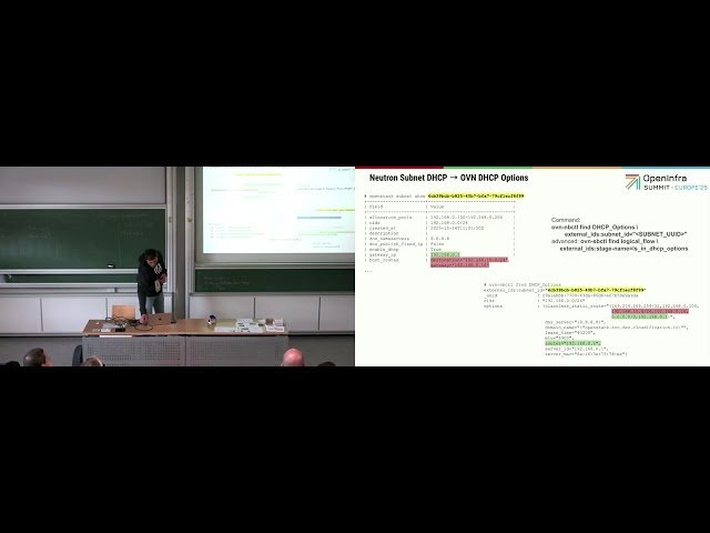 Learn how network traffic flows within OpenStack installations using the ML2/OVN driver through practical demonstrations and troubleshooting techniques in this 30-minute conference talk by Vadim Ponomarev from the OpenInfra Foundation. Explore three critical traffic flow patterns: East-West communication between instances, Source Network Address Translation (SNAT) for outbound connectivity, and Floating IP configurations for inbound access. Discover practical hacks and debugging strategies to diagnose and resolve common networking issues that arise in OVN-based OpenStack deployments. Master the fundamentals of OVN network analysis without getting bogged down in driver comparisons or theoretical debates, focusing instead on hands-on problem-solving approaches that build confidence in troubleshooting real-world network problems.
