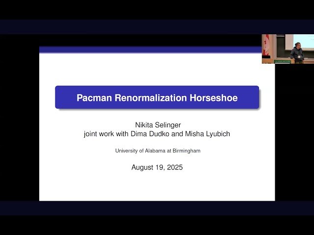 Explore advanced concepts in dynamical systems theory through this 52-minute conference talk examining the Pacman Renormalization Horseshoe presented by Nikita Selinger from the University of Alabama at Birmingham. Delve into the intricate mathematical structures that emerge in nonlinear dynamical systems, focusing on renormalization techniques and horseshoe dynamics. Learn about the geometric and topological properties of these complex mathematical objects and their applications in understanding chaotic behavior. Discover how renormalization theory provides insights into the self-similar structures found in dynamical systems and examine the specific case of the Pacman map as a model system. Gain exposure to cutting-edge research in nonlinear dynamics presented as part of the Fields-CNAM Nonlinear Days 2025 conference series on Structures and Processes: Dynamical, Geometric, and Random.