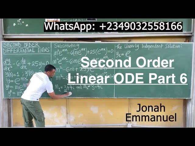 Part 6 Second Order Linear Differential Equations Example and Complete Solution #jonahemmanuel