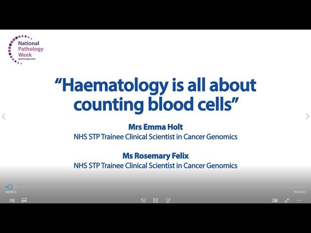 Watch a myth-busting presentation delivered by NHS STP Trainee Clinical Scientists Emma Holt and Rosemary Felix during the National Pathology Week event, where they challenge the common misconception that haematology solely involves counting blood cells. As representatives of the British Society for Haematology, the speakers provide insights into the broader scope and complexity of haematological practice in modern healthcare. Part of a nine-video series exploring various pathology myths, this 11-minute talk offers valuable perspectives for those interested in pathology careers and the diverse field of haematology within the medical sciences.