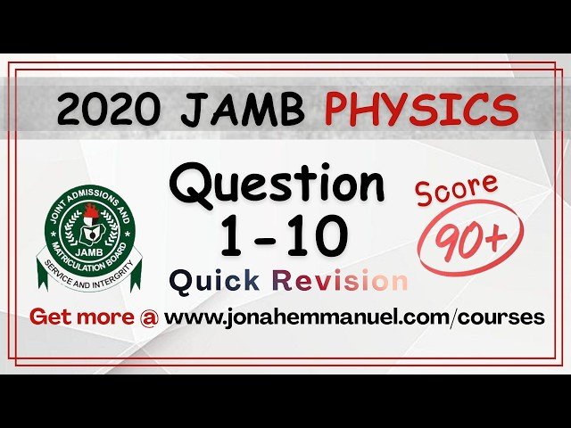 Master JAMB Physics past questions from 2020 through this comprehensive tutorial that provides step-by-step solutions and detailed explanations. Learn effective problem-solving techniques aligned with the official JAMB Physics syllabus to help you achieve scores of 90+ on your examination. The tutorial walks through multiple past questions, demonstrating the correct approach to tackle various physics concepts commonly tested in JAMB examinations. Gain insights into the most effective strategies for answering physics questions under exam conditions, understand common question patterns, and develop the analytical skills needed to excel in your JAMB Physics test.