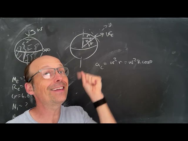 Explore the physics behind Earth's rotation and its effect on apparent weight through a detailed problem-solving video that examines how rotational motion influences the normal force experienced by people at different locations on Earth. Calculate the ratio of apparent weight to gravitational force for a person standing at the equator, where Earth's rotation creates circular motion with a radius equal to Earth's radius, and discover why this rotation actually decreases rather than increases apparent weight. Compare this equatorial effect with the conditions at the South Pole to understand the fundamental relationship between rotational dynamics and gravitational forces, while dispelling the common misconception that Earth's rotation causes gravitational force.