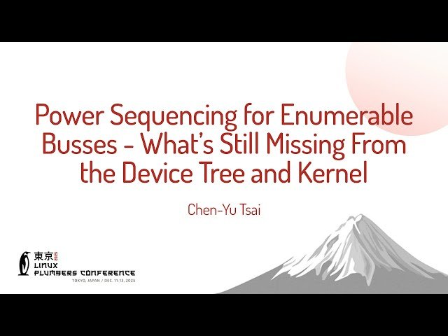 Explore power sequencing challenges for enumerable buses in Device Tree platforms through this 19-minute conference talk from the Linux Plumbers Conference. Examine the differences between x86/ACPI platforms where devices are directly visible to the OS and Device Tree platforms that require additional power sequencing steps like regulator supply toggling and GPIO line management. Learn about existing solutions that currently work, identify gaps in Device Tree specifications, and discover kernel implementation issues where Device Tree definitions exist but lack proper kernel support. Analyze accumulated workarounds and technical debt that need cleanup in the Linux kernel's power management subsystem for enumerable bus devices.