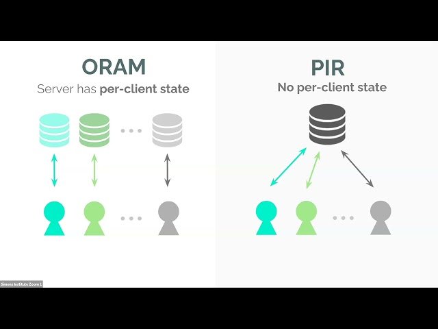 Learn about Private Information Retrieval and Oblivious RAM in this comprehensive lecture delivered by Elaine Shi from Carnegie Mellon University at the Simons Institute. Explore fundamental cryptographic concepts that enable secure data access while preserving privacy, covering techniques that allow users to retrieve information from databases without revealing which specific data they accessed. Delve into Oblivious RAM protocols that hide memory access patterns from potential adversaries, understanding how these mechanisms protect against side-channel attacks and maintain confidentiality in distributed systems. Examine the theoretical foundations, practical implementations, and real-world applications of these privacy-preserving technologies within the broader context of modern cryptographic systems. Gain insights into the mathematical frameworks underlying these protocols and their significance in secure computation environments, as part of the Cryptography 10 Years Later Boot Camp focusing on obfuscation, proof systems, and secure computation advances.