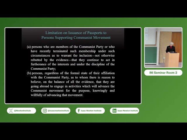 Explore a compelling historical lecture that delves into the 1953 State Department investigation of renowned mathematician Oswald Veblen. Professor Karen Parshall from the University of Virginia examines the political climate and circumstances surrounding the case against Veblen during the McCarthy era. Learn about the intersection of academia and politics in mid-20th century America, the impact of Cold War tensions on the mathematical community, and how associations could taint even prominent scholars during this turbulent period. Part of the Modern History of Mathematics series at the Isaac Newton Institute, this hour-long presentation offers valuable insights into a significant episode that highlights the complex relationship between scientific pursuit and political scrutiny in American history.