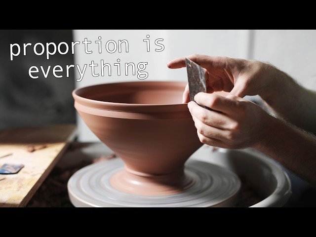 Learn the art of pottery wheel throwing and trimming through a detailed 20-minute tutorial that demonstrates recreating a ceramic bowl with improved proportions. Master essential techniques including clay preparation, centering on the potter's wheel, opening clay lumps, and pulling up walls to create refined forms. Discover how to shape larger ceramic pieces while stretching clay in controlled ways to prevent distortion and slumping. Explore advanced trimming methods for soft clay, including the extra care required when working with pieces that haven't fully dried. Follow along as the instructor addresses common pottery challenges like 'S' cracks and demonstrates how small decisions impact the final form's proportions and aesthetic appeal. Compare the finished refined bowl with its original iteration to understand how thoughtful adjustments to foot width and wall sharpness can dramatically improve a ceramic piece's overall balance and visual impact.