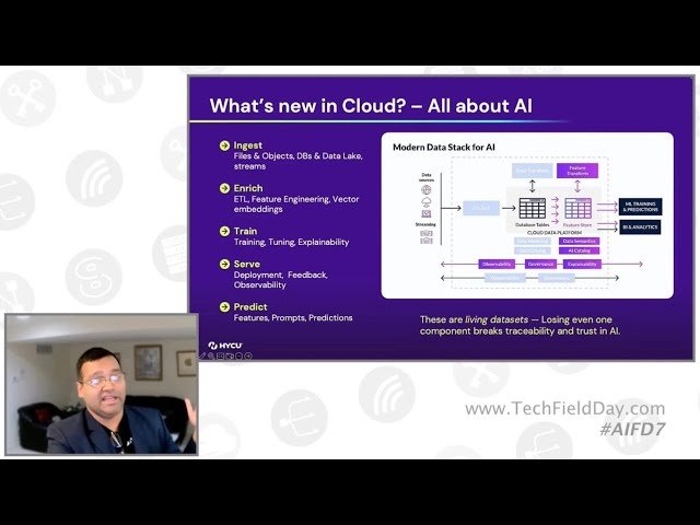 Learn how to protect the critical data and infrastructure that power AI systems in this 49-minute conference presentation from AI Field Day 7. Discover why foundational AI data often lacks comprehensive protection despite the focus on GPUs and models, and explore the significant challenges in maintaining consistency, accuracy, and recoverability across vast datasets in data lakes, object storage, and lakehouses. Understand how cloud environments have become the "home of AI" while introducing new threats through fragmented services and protection blind spots. Examine HYCU's comprehensive approach to AI data protection that goes beyond traditional backup solutions by capturing entire ecosystems including metadata, views, access policies, and AI-specific formats like enriched JSON and vector databases. Explore how this platform enables traceability and rollback capabilities for AI pipelines, addressing critical issues such as schema drift, corrupted data, and poisoned datasets while aligning backups with model training checkpoints. Gain insights into cost-effective backup strategies using deduplication technologies like DD Boost that achieve up to 40:1 storage savings and support cross-cloud protection to prevent vendor lock-in and catastrophic failures.