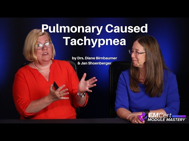 This 19-minute educational video features Drs. Diane Birnbaumer and Jan Shoenberger discussing Pulmonary Caused Tachypnea as part of the EMCert Module Mastery series. Prepare for ABEM MyEMCert exams with this comprehensive review that covers essential information about tachypnea related to pulmonary conditions. The video includes detailed audio explanations with supporting slides to reinforce key clinical concepts. As part of a complete preparation program that covers all 8 modules, learn from the creators of the National Emergency Medicine Board Review Course. Earn AMA PRA Category 1 Creditâ„¢ while gaining access to the EM QuickSearchâ„¢ tool to find answers quickly during exams. Designed to help emergency medicine physicians efficiently prepare for each module in just one day.