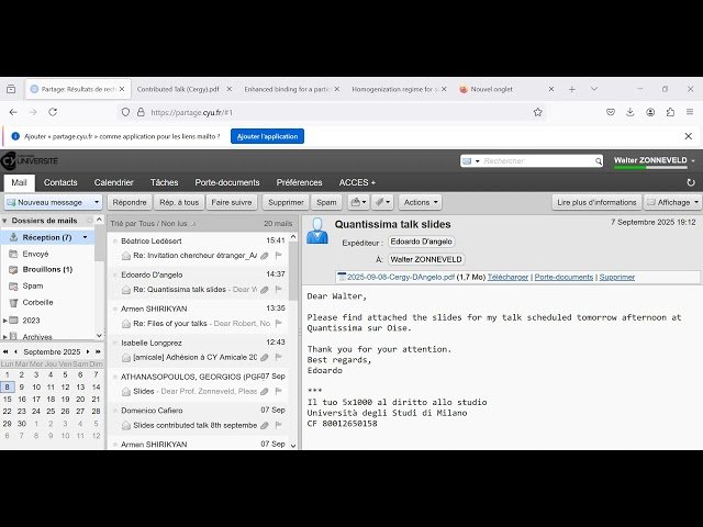 Découvrez une série de conférences courtes présentées lors de la première journée du mois thématique Quantissima sur Oise 2025 à CY Advanced Studies. Explorez quatre présentations spécialisées en physique théorique et mathématique : apprenez les flux de groupe de renormalisation dans les espaces-temps lorentziens avec Edoardo D'Angelo, examinez les solutions exactes des modèles d'Ising classiques 2D et quantiques 1D avec Georgios Athanasopoulos, plongez dans le régime d'homogénéisation pour les perturbations singulières d'hamiltoniens quantiques avec Domenico Cafiero, et analysez la liaison renforcée dans les modèles de polaron à une particule avec Tobias Schmidt.