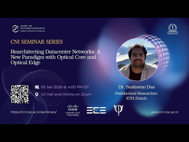 Explore a groundbreaking approach to datacenter network architecture in this 41-minute research talk that addresses the critical challenges facing modern cloud infrastructure. Learn how optical circuit-switching (OCS) technologies can revolutionize datacenter networks by providing sustainable, energy-efficient solutions that overcome the limitations of traditional CMOS-based electrical packet-switch ASICs in the post-Moore's law era. Discover the innovative OSSV architecture that combines an OCS-based core for ToR-level connectivity with OCS-based reconfigurable edge components that dynamically reshape traffic patterns. Understand the novel Skewness and Volume (SV) minimization optimization framework designed to balance traffic distribution and minimize inter-rack communication overhead. Examine how optical circuit-switching offers unique advantages including data rate agnosticism, negligible power consumption, minimal forwarding latency, and reduced upgrade requirements. Analyze comprehensive simulation results and testbed evaluations demonstrating significant performance improvements over traditional all-optical DCN cores under diverse traffic scenarios. Gain insights into the practical implementation challenges and solutions for next-generation cloud infrastructures that must support demanding applications like HPC, distributed machine learning, and deep neural networks with stringent performance requirements while maintaining sustainability and cost-effectiveness.