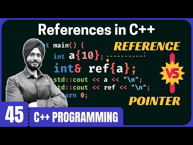 Learn about references in C++ programming through this 19-minute educational video that covers fundamental concepts essential for C++ developers. Explore the introduction to pointers in C++ and understand how references work as an alternative mechanism for indirect access to variables. Discover the key differences between references and pointers, including their syntax, behavior, and use cases in C++ programming. Master important points about references, including their initialization requirements, inability to be reassigned, and their role as aliases for existing variables. Gain practical knowledge about when to use references versus pointers in your C++ code, understanding the advantages and limitations of each approach for memory management and variable manipulation.