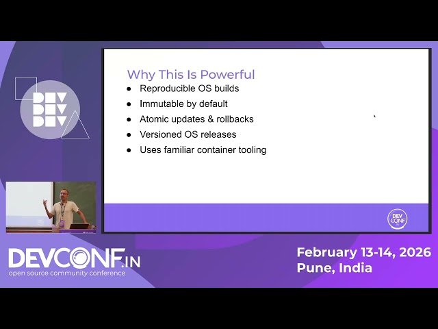 Explore bootc technology and learn to create custom Linux distributions using container-native approaches in this 41-minute conference talk from DevConf.IN 2026. Discover how bootc transforms traditional OS building by leveraging familiar container-building techniques to convert OCI images into bootable, updatable Linux systems. Master the use of Podman Desktop as a cross-platform environment that simplifies bootc workflows through its intuitive UI and built-in extensions, enabling development on Linux, macOS, and Windows without specialized tooling or deep OS knowledge. Walk through the complete process of building custom Linux OS images from scratch, testing bootable images locally using the bootc plugin in Podman Desktop, and implementing best practices for OS versioning, updates, and reproducibility. Understand how this modern, declarative approach makes custom Linux distribution creation accessible to developers while maintaining reproducible, immutable, and automated system images that can be built, tested, and published directly from your workstation.