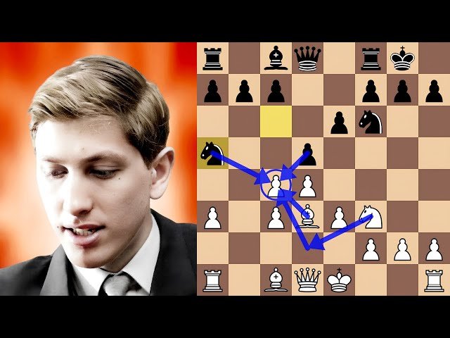 Watch an instructional chess analysis examining a masterful 1961 game between Samuel Reshevsky and Bobby Fischer, where Reshevsky demonstrates the devastating power of central pawn advances in the Queen's Gambit Declined, Ragozin Defense. Learn how Reshevsky capitalizes on Fischer's early 7...Bxc3 exchange, which creates a minor-piece imbalance but grants White a strengthened central pawn structure and the opportunity to prepare the critical e4 break. Discover the systematic preparation required before executing the central advance, as Reshevsky methodically positions his pieces to support the eventual e4-e5 pawn storm that completely dismantles Fischer's position in just four moves. Study how an invasive pawn on e5 can transform a seemingly balanced position into a winning advantage, with detailed move-by-move analysis of the tactical and positional themes that led to Fischer's rapid collapse after only 28 moves. Gain insights into classical chess principles of central control, pawn structure, and piece coordination through this instructive example of precise positional play at the highest level.