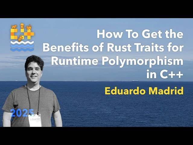 Explore how to implement Rust's trait system in C++ through this 58-minute conference talk from C++ on Sea 2025. Learn about the limitations of traditional C++ runtime polymorphism using inheritance and virtual overrides, including their intrusive nature and inadequate performance in many scenarios. Discover how Rust traits offer a superior approach to runtime polymorphism and how C++'s expressive nature allows you to incorporate this central Rust feature with optimal performance that may even exceed both C++'s normal mechanisms and Rust's native implementation. Follow a step-by-step transformation process starting with C++ and a type erasure library to create the functional equivalent of Rust traits. Gain insights from Eduardo Madrid, a generic programming practitioner with extensive experience as a team leader and tech leader at automated trading firms and consulting, and author of the zoo libraries including Type Erasure and SWAR.