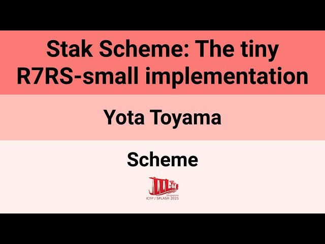 Learn about Stak Scheme, a minimal yet fully-featured R7RS-small Scheme implementation designed for embedded scripting in resource-constrained environments. Discover how this compact interpreter achieves complete R7RS-small standard compliance with just 10 KLOC, featuring a 1.6 KLOC Scheme bytecode compiler and a 1.5 KLOC Rust virtual machine. Explore the implementation's support for all major language features including the library system, hygienic macros with syntax-rules, continuations, exception handling, and the fully-featured eval procedure. Examine the innovative bytecode encoding and decoding algorithms that uniformly convert code and data between in-memory graph format and serialized byte sequences. Analyze performance comparisons demonstrating how Stak Scheme maintains competitive performance with other Scheme implementations and scripting languages despite its minimal design philosophy, making it an ideal solution for dynamic logic evaluation on embedded platforms.