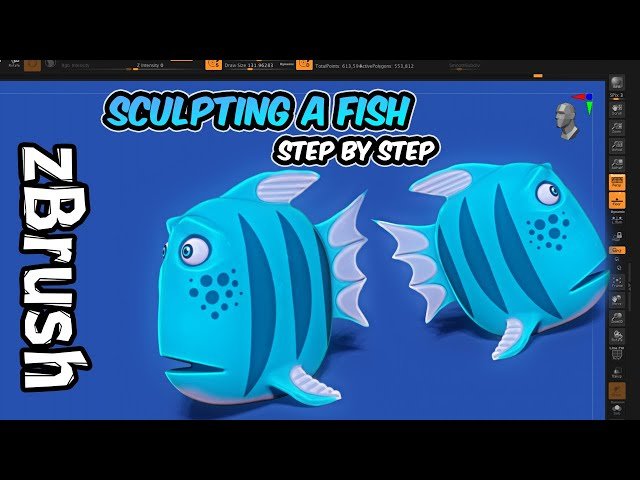 Sculpting & Painting a Cute Cartoon Fish in ZBrush