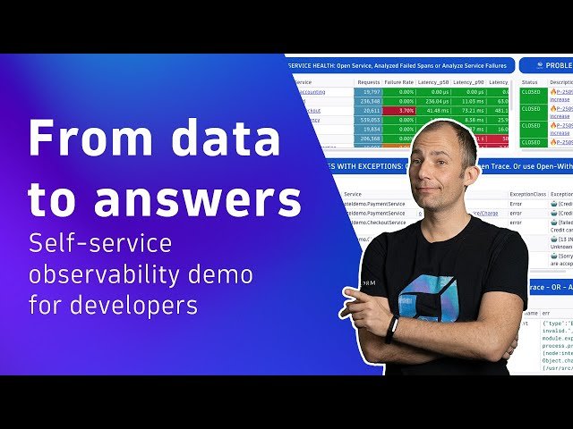 Learn how to implement self-service observability for cloud-native applications using Dynatrace's Davis CoPilot in this 13-minute video tutorial. Explore a reference observability implementation demonstrated on the OpenTelemetry Demo App AstroShop, where CNCF Ambassador Andreas Grabner shows how engineers can get actionable insights from exponentially growing observability data without becoming experts in analyzing logs, metrics, and traces. Discover how to explain root causes and remediation actions for ArgoCD Sync-related problems, pinpoint representative traces for high service failure rates with a single click, understand exceptions that cause transaction failures, interpret cryptic log messages with actionable suggestions, and get comprehensive overviews of the 4 Golden Signals across all services. Master practical troubleshooting techniques through hands-on demonstrations of service failure analysis, trace details examination, problem detection and analysis, and error log interpretation, all while leveraging AI-powered assistance to streamline the observability workflow for cloud-native environments.