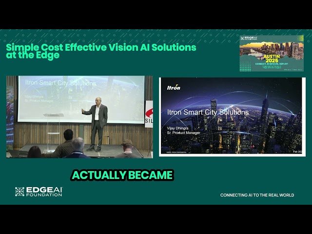 Explore a 19-minute conference talk examining Sony's groundbreaking IMX500 image sensor that integrates AI processing directly on-chip to revolutionize edge computing and smart city applications. Discover how this innovative sensor performs local AI inference and transmits only metadata rather than complete images, dramatically reducing bandwidth requirements to kilobytes while preserving privacy and minimizing power consumption. Learn about real-world deployment success stories, including a Lakewood, Colorado traffic safety implementation that achieved 100% performance in identifying dangerous situations while outperforming three competing technologies at lower cost. Understand how partnership with ITRON enables seamless deployment using existing streetlight infrastructure to create mesh networks of intelligent sensors without expensive new installations or dedicated power sources. Examine the broader applications beyond traffic monitoring, from retail analytics to manufacturing quality control, and see how this edge AI technology addresses privacy, power, and practical deployment challenges to create a foundation for next-generation smart infrastructure across urban centers, commercial spaces, and industrial facilities.