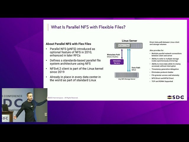 Learn about the Open Flash Platform (OFP) initiative in this 55-minute conference presentation that addresses enterprise IT infrastructure challenges in meeting soaring AI and analytics storage demands. Discover how current proprietary, server-based storage solutions create isolated silos that waste power, lack cloud connectivity, and lock data behind vendor walls, hampering AI goals. Explore the OFP architecture modeled on the Open Compute Project that liberates high-capacity flash through an open design built on standard pNFS included in every Linux distribution, where each OFP unit contains a DPU-based Linux instance and network port for direct peer connection without additional servers. Understand how removing surplus hardware and proprietary software enables enterprises to use dense flash efficiently, halving total cost of ownership and increasing storage density 10×, with early configurations delivering up to 48 PB in 2U and scaling to 1 EB per rack for a 10× reduction in rack space, power, and operational expenses plus 33% longer service life. Gain insights into how leveraging native Linux and pNFS eliminates unnecessary proprietary software and additional hardware layers to significantly simplify high-capacity storage deployments, while recognizing how open-standard architectures deliver dramatic cost savings, increased storage density, and substantial reductions in power consumption and operational complexity. Examine how the OFP initiative aligns with and expands the Open Compute Project vision to create scalable, vendor-neutral storage infrastructures without isolating data in proprietary silos.